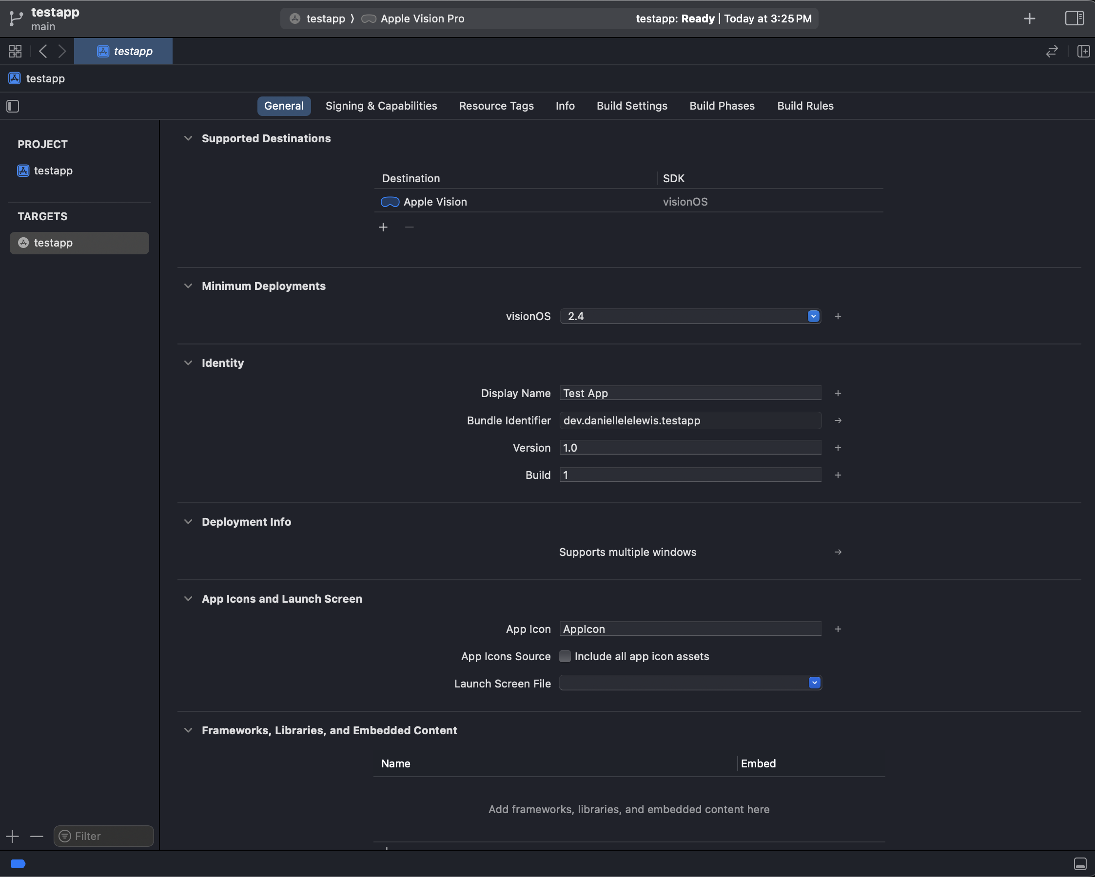 You’ve coded and tested your app, and now you’re ready to submit. Go to your app target and make sure you have a unique bundle identifier. The display name field dictates the name of your app on the user's Home Screen. If your app's name is long, you can provide a shortened name here. Keep in mind that it can't be too different from your app's name or you may have issues once it's in review. The version and build number must also be unique so if you've already submitted Version 1.0 you will have to increment the version number (1.01, 1.1, etc) and submit your next build as an update.