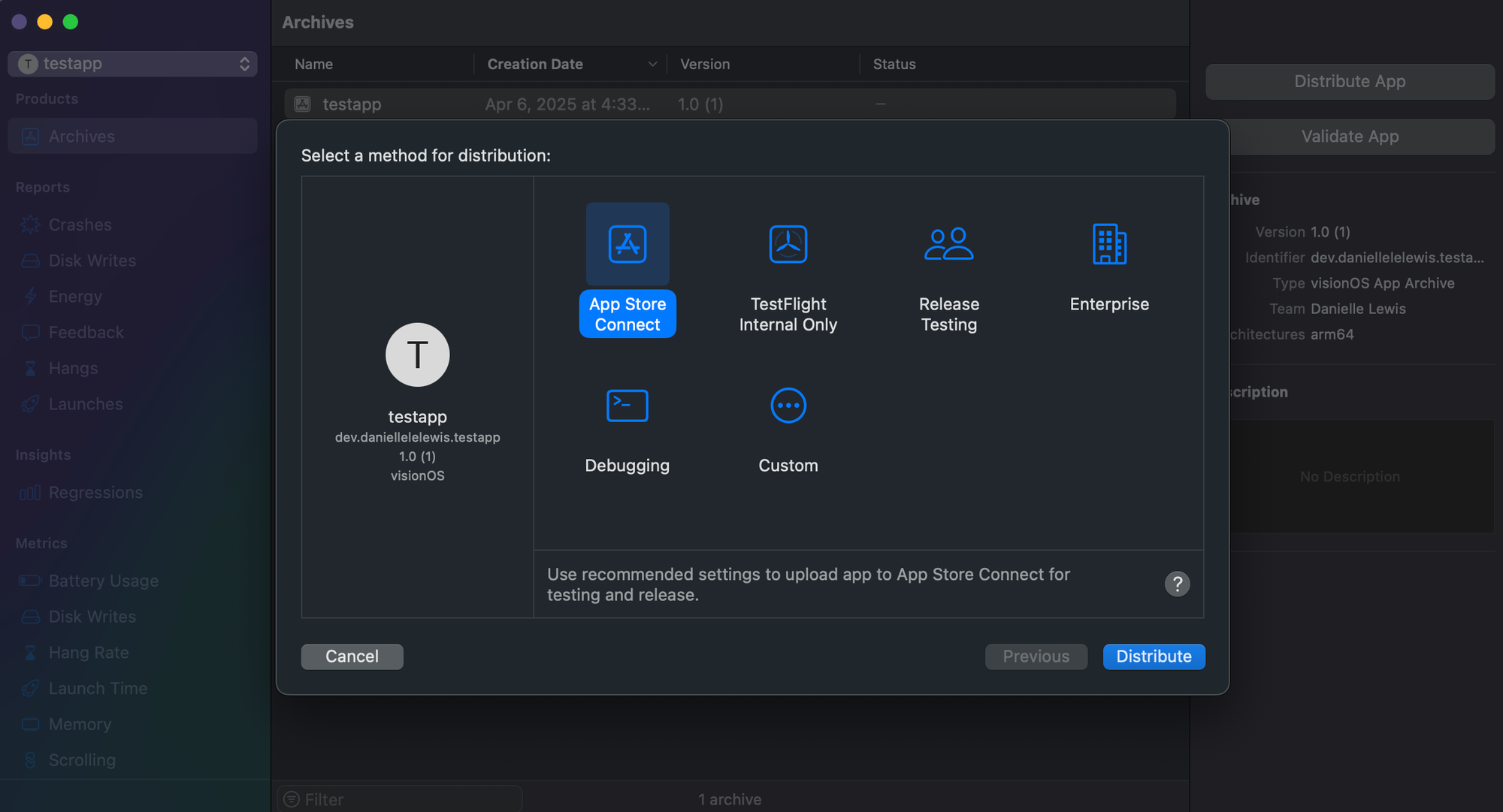 Then click App Store Connect as your distribution method.