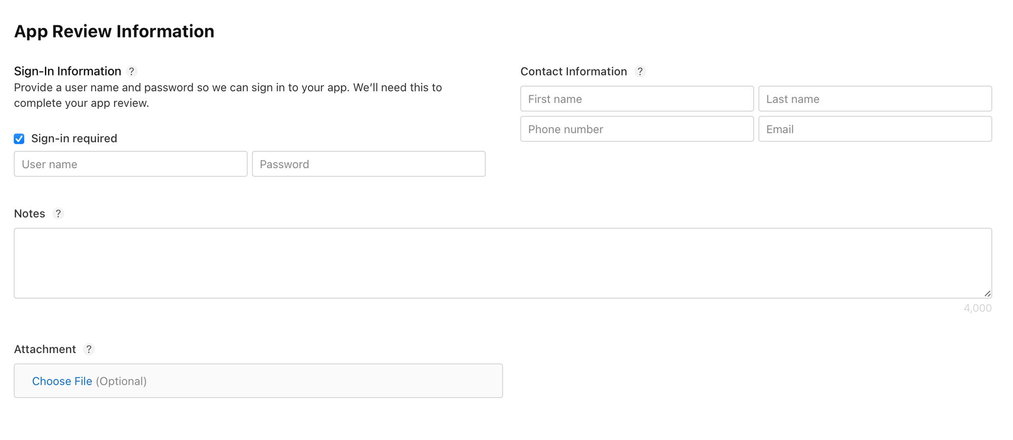 You can also include any notes here if there are specific instructions you'd like to pass on to the reviewers. This can be helpful for telling them how to sign-in, how to use the features of your app, or whatever information you think they may need to complete their review.