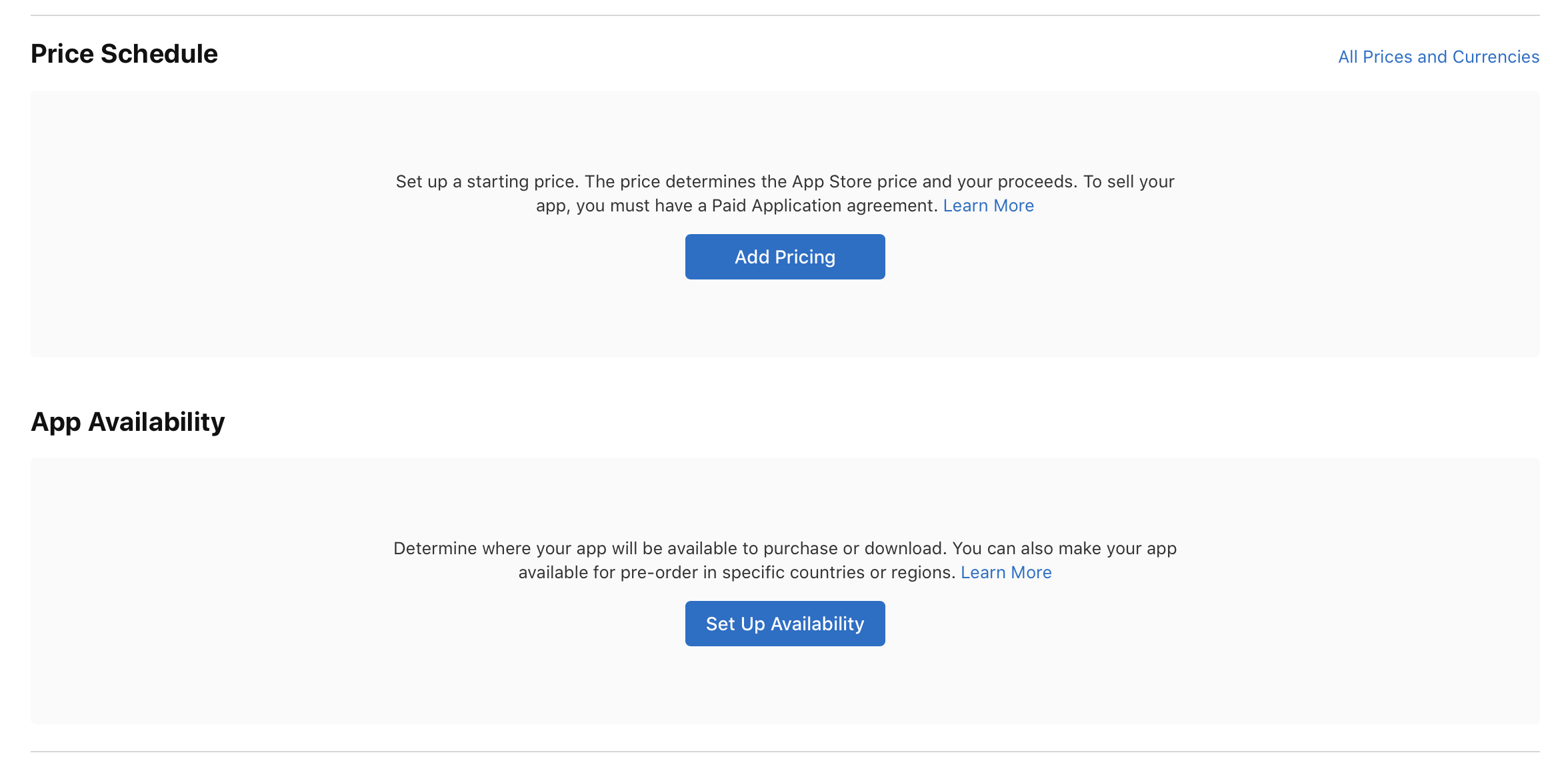 We are almost done! If we are not using in-app purchases or subscriptions, which I am not for this demo, the last thing we need to do is set up our app pricing and availability.